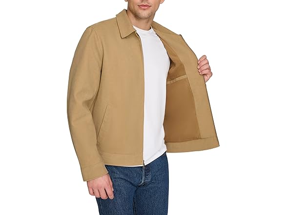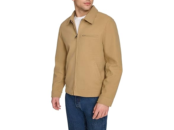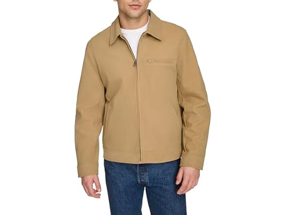 Levi's Men's Faux Leather Laydown Collar Racer Jacket, Tan Faux Suede, Small