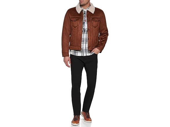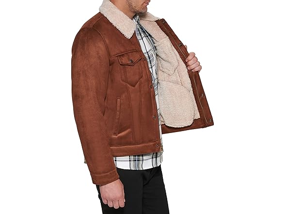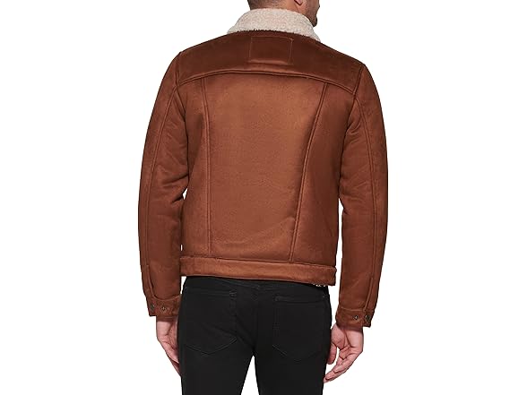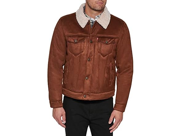 Levi's Men's Faux Leather Sherpa Lined Trucker Jacket, Brown Faux Shearling, X-Large