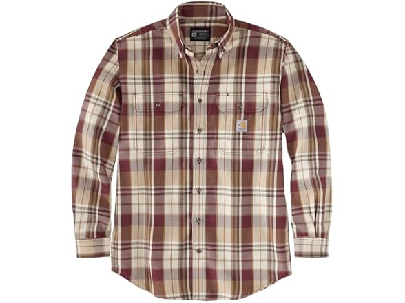 Carhartt Men's Standard Flame Resistant Force Rugged Flex Loose Fit Midweight Twill Plaid Shirt, Port/Oat Milk, Large
