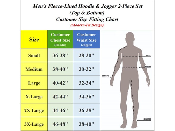 Men's Fleece-Lined Full Zip Hoodie & Jogger - 1 Set (Sizes, S to 3XL) - Various Colors