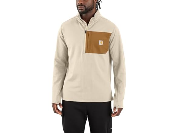 Carhartt Men's Force Relaxed Fit Mock Neck Half-Zip T-Shirt, Oat Milk, Small