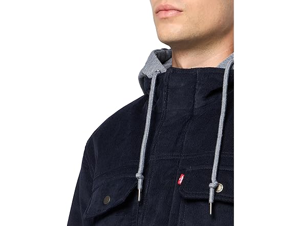 Levi's Men's Hooded Utility Jacket, Navy Corduroy, Large