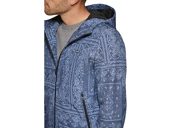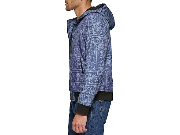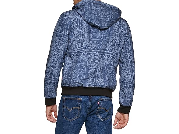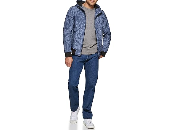 Levi's Men's Hooded Water Resistant Softshell Bomber Jacket, Faded Blue Bandana, Large