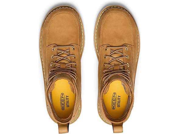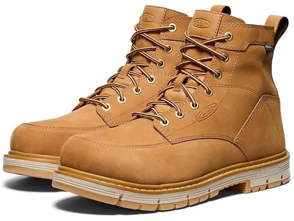 These featherweight work boots pack a punch with quality materials and performance safety features, with an air-injected midsole for sustained comfort and a lightweight aluminum safety toe. Its all-weather style gets even better with a KEEN.DRY waterproof, breathable membrane. Weighing 26.40 oz / 748 g (per boot), made with durable, waterproof leather and featuring a moisture-wicking lining the San Jose 6” waterproof work boots for men are built off KEEN's traditional wider footwear form. KEEN Utility products offer removable insoles. These dependable work boots are great for medium-duty work in construction, energy, landscaping, carpentry, utilities, framing, and light manufacturing jobs. All KEEN Utility products feature leather from tanneries certified by the Leather Working Group (LWG); which reduces water and energy use. KEEN Utility believes in creating work boots that make work and life better. From helping put veterans back on their feet to supporting conservation corps work across the country, KEEN Utility puts good to work, first.