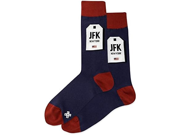 Hot Sox Men's NYC Luggage Tag Crew Socks 1 Pair Pack, Navy, Men's Shoe Size: 6-12