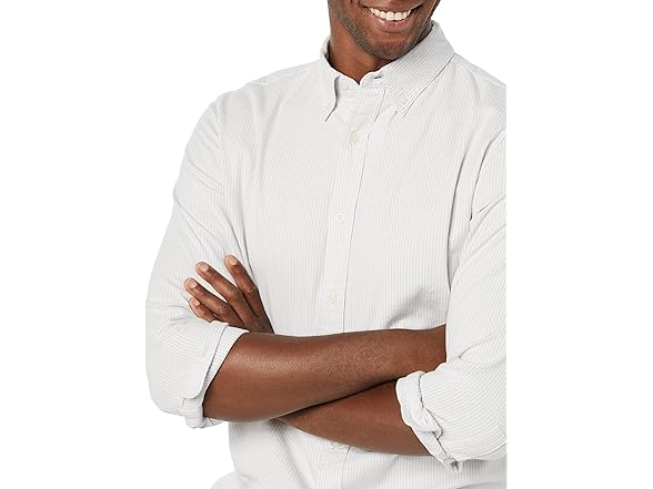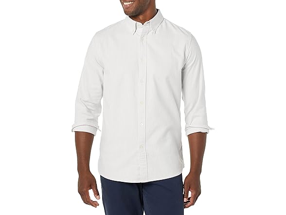 Mens RegularFit Oxford Light Grey Stripe (M)
