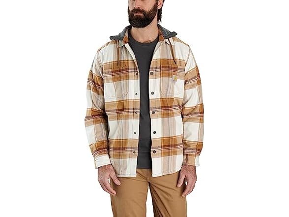 Carhartt Men's Rugged Flex® Relaxed Fit Flannel Fleece Lined Hooded Shirt Jac, Carhartt Brown, XX-Large, Tall
