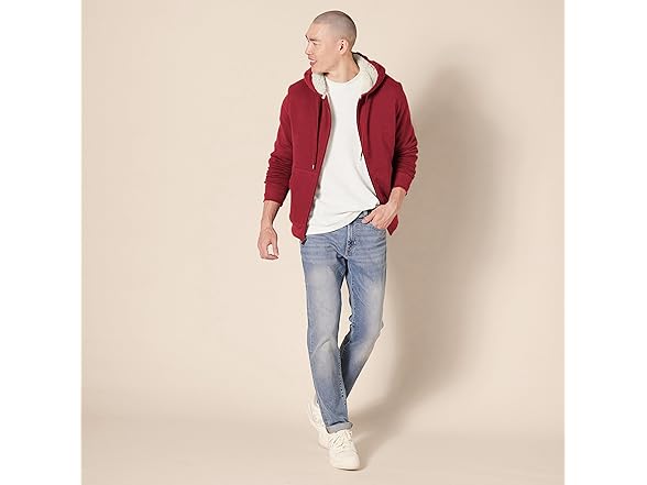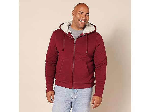 Amazon Essentials Hoodie For Men, Sherpa-Lined Full-Zip Fleece Sweatshirt, Medium, Red