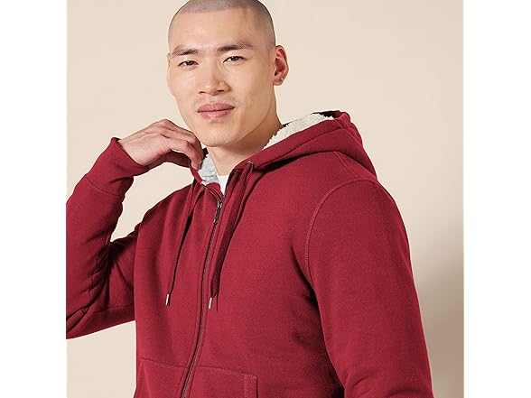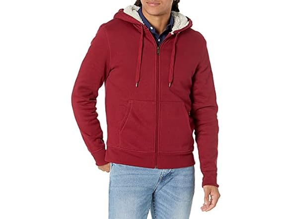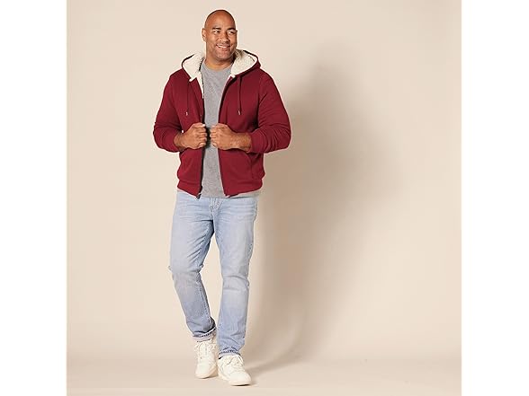 Amazon Essentials Hoodie For Men, Sherpa-Lined Full-Zip Fleece Sweatshirt, XX-Large, Red