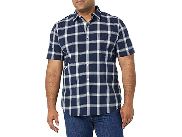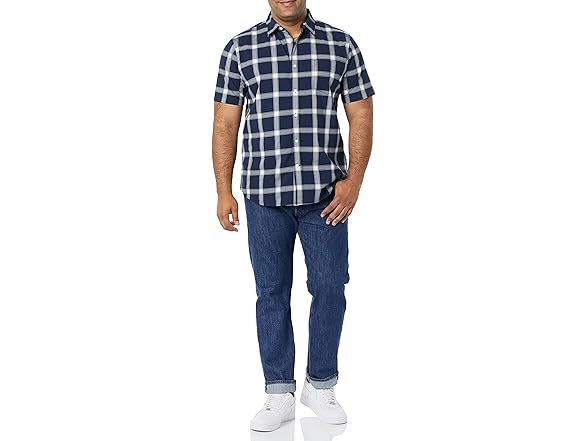 Mens SlimFit Poplin Navy Buffalo Plaid (S)