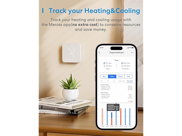 - Save on Energy Bills: Track your heating and cooling usage with the Meross app to conserve resources and save money