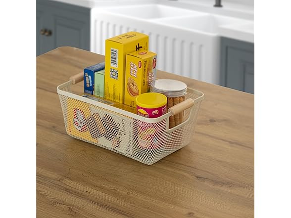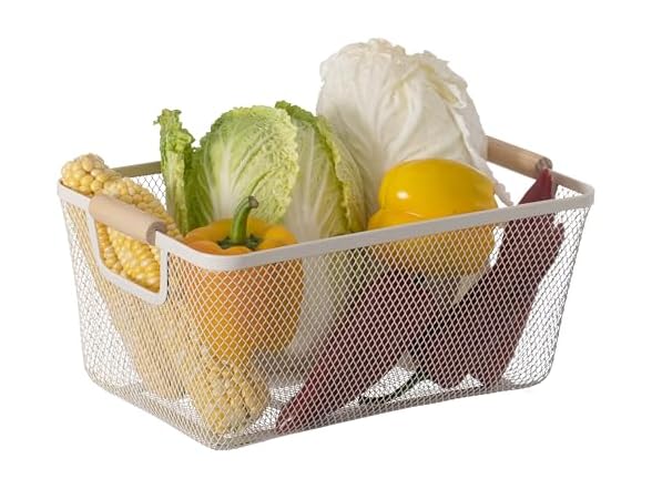 - Functional Elegance: With its open-weave metal frame and wooden side handles, this basket offers a stylish solution for everyday storage. The breathable mesh design keeps contents visible and well-ventilated, while the wooden handles provide a natural accent and make it easy to move from room to room. Its versatile look and lightweight build make it perfect for both daily use and display.