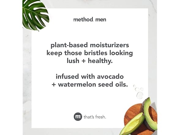 if you want your beard to be revered you need to keep those bristles looking lush + healthy. infused with fast absorbing avocado + watermelon seed oils, this formula is your beard’s best buddy. It quickly conditions + shines the fiercest facial hair, taking any beard from bedraggled to beautiful in just a few pumps.