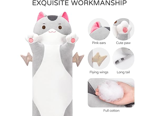 Mewaii Long Body Throw Pillow, 36" Kitten Plushies