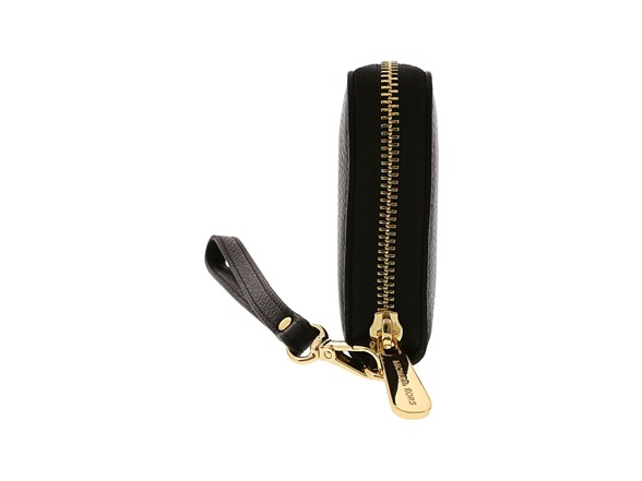 Supple leather elevates this wallet that can be taken along solo with the help of a wrist strap.