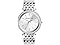 - Round stainless steel case with a silver dial. silver stainless steel bracelet with deployant closure