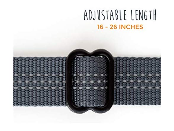 - COMFORT: Our easy adjustable tri-glide attachment can extend from 16 inches to 26 inches allowing for more or less freedom based on the size of your dog. Also, we've cleverly included a tangle-free attachment that will allow the dog to rotate and move around without ever tangling.