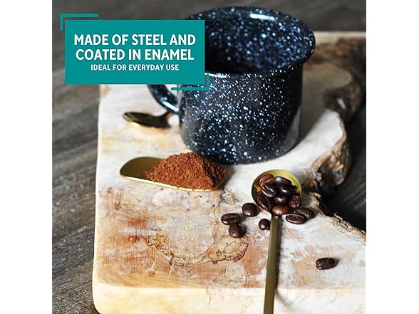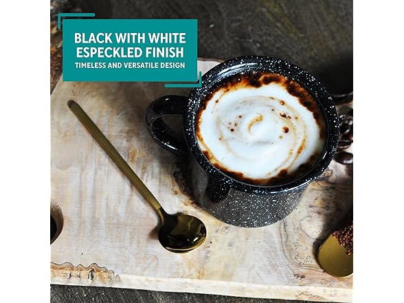 - FUNCTIONALITY WITH STYLE: Combining a 12 oz capacity, steel construction, and a black speckled enamel coating, this mug is designed for both functionality and style, its sturdy build and smooth surface enhance its practicality for everyday use