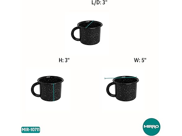 The Mirro 12Oz Enamel Mug is an essential item in every kitchen. Made in Mexico, from steel and coated in black enamel with speckled finish, the Mirro Enamel Mug is not only visually appealing but also robust and reliable. The Mirro Enamel Mug has a capacity of 12Oz. It’s easy-to-hold handle ensures a comfortable grip and convenient storage, and its versatility makes it perfect for home use, office, restaurant, parties, gatherings, camping, picnics, and much more. Its freezer-safe and high-temperature-resistant design makes it suitable for a variety of beverages and occasions. Whether you're enjoying coffee, tea, or milk, the Mirro Enamel Mug excels. Upgrade your drinking game with the Mirro Enamel Mug, a reliable and stylish addition that will elevate your culinary experience. Trust the Mirro Enamel Mug to create balanced homemade drinks for the entire family and elevate your cooking experience with this reliable and multifunctional tool that brings efficiency and versatility to your kitchen.