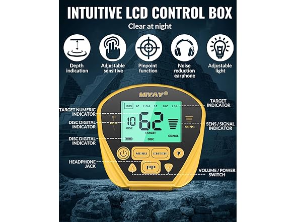 - Intuitive LCD Display with Customizable Sensitivity – Enjoy a user-friendly LCD screen that displays metal types, depth, sensitivity levels, and battery status. With a backlight function, you can easily read the display in low-light or nighttime conditions, making treasure hunting possible anytime, anywhere.