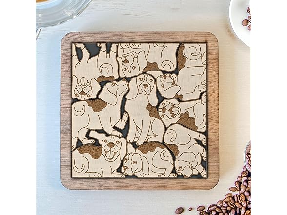 02 Beagle Dog Coaster - Beagle Dog Puzzle Wooden Coaster Set - Interlocking Jigsaw Drink Mats with Laser-Cut Design for Beagle Lover
