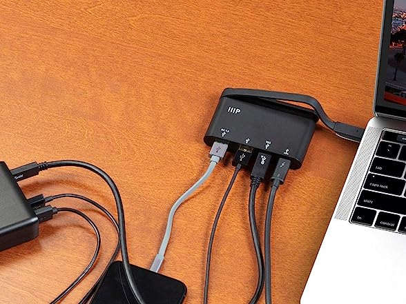 - Everything you need - and then some. The adapter features two USB Type-C ports with data transfer rates up to 10Gbps, as well as two USB 3.0 Type-A ports with data transfer rates up to 5Gbps.