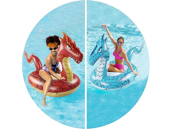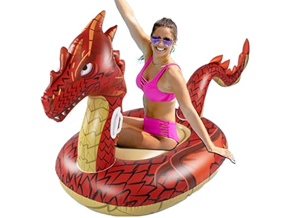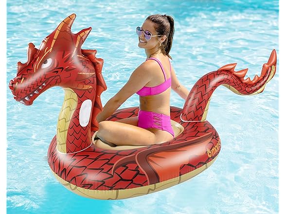 Monsoon [Dragon] Inflatable Pool Floats for Adults Large Ride-On Swimming Pool Float Floatie with Handles - Red