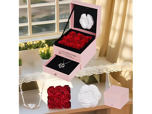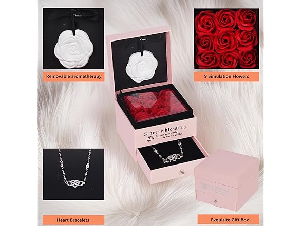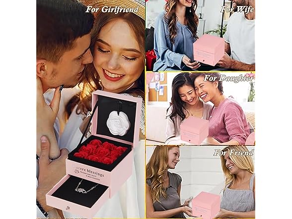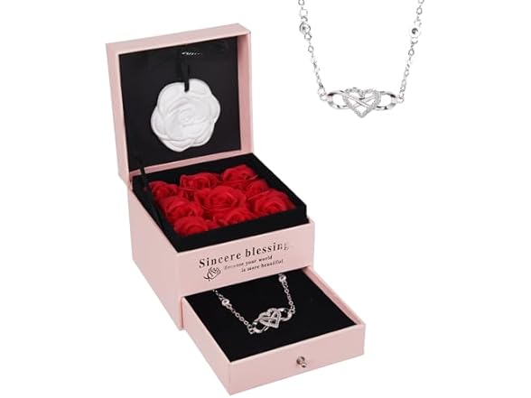 Moodmoon Preserved Real Red Rose,Red Real Rose with Heart Necklace,Eternal Flowers Rose Birthday Gifts for Women Her Mom Wife Girlfriend Grandma (Heart Bracelets)