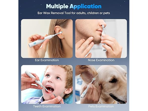 - Wide Range of Uses: The ear wax removal has a wide range of uses and is suitable for adults, children or pets who want to remove earwax or check other body parts such as teeth, nasal cavities, throat, and scalp. Carefully follow the instructions before use to ensure safe and effective use of the device. If you are not proficient in the use of otoscopes, it is not recommended for children or pets