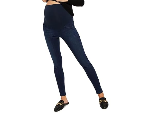 Motherhood Maternity Women's Plus Size Super Stretch Secret Fit Over The Belly Skinny Ankle Length Jeans, Dark Wash