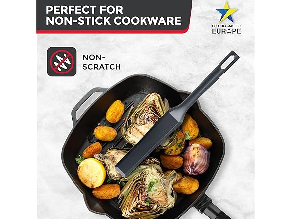 - Nonstick Cookware Compatible - You can use this spatula with just about any piece of cookware or bakeware – even your best non-stick pans! With its anti-scratch nylon blade, it won’t scratch or damage them.