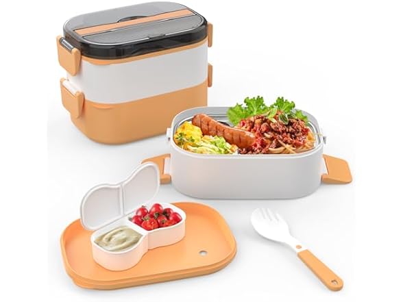 Muggo Lunch Box for Men Women Double Deck - Leakproof Insulated Soft Large Adult Lunch Cooler Bag for Work (orange)