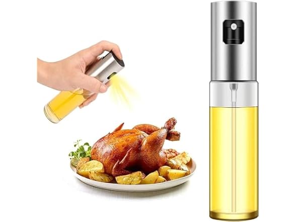 [MUNAKI] Refillable Oil Sprayer for Cooking - 100 mL/3.38 oz; Continuous, Even, Ultra Fine Spray; Oil & Water Capabilities for Multi-Purpose Utilitizations - Stainless Steel & Glass