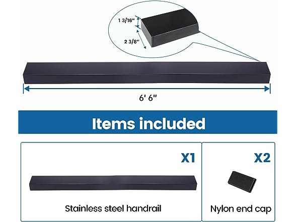 - IMPORTANT to know before purchases - This item only contains 1pack 6'6" STAINLESS STEEL flat handrails. To avoid mismatch of accessories, please search following models to build your complete railing project: Muzata HA01 extension connector, HA02 90° corner connector, HA23 vertical pivot connector, HA24 level pivot connector, HA12 end cap, HA33 end bracket. You can check the bundle sets below to save time
