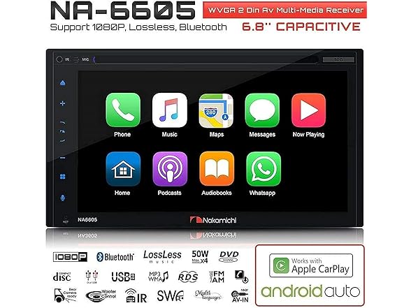 NAKAMICHI NA6605 Double-Din In-Dash 6.8" WVGA Display Apple Car Play & Andriod Auto Multimedia CD DVD USB MP3 Bluetooth Spotify & Pandora Car Stereo Receiver (Open Box)
