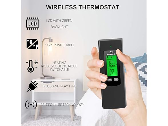 - 【Easy to Use】 No installation or wiring needed, just plug and play, plug your portable heating or cooling unit into the thermostat outlet, and you're ready to go. Comes with LCD display, supports reading in Celsius or Fahrenheit units.