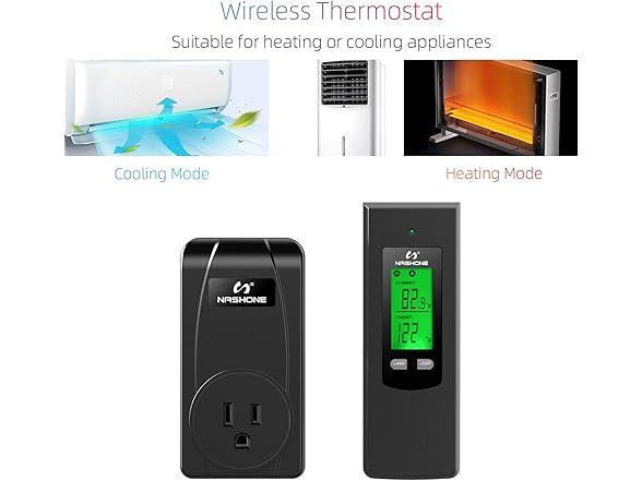- 【Wide Applications】 The smart outlet thermostat is widely used for space heater, portable heater, wall panel heater, oil-filled radiator, electric fireplace heater, evaporative cooler, swamp cooler, attic fan, window air conditioner, etc.