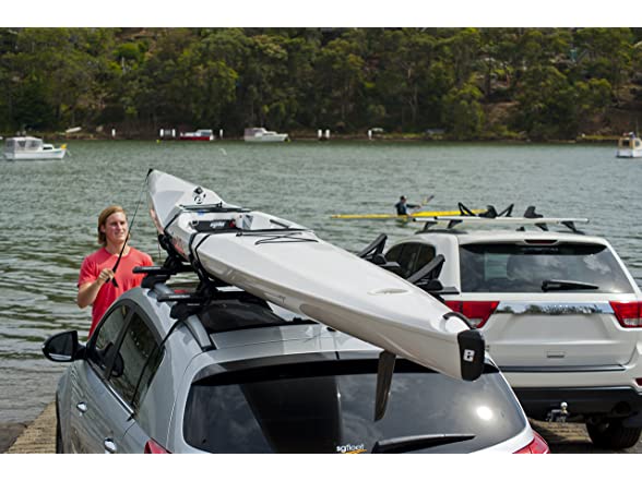 Nautic Side Loading Kayak, Canoe & SUP Carrier, Roof Rack Cross Bar Channel Mounted, Easy Use; for All Vehicles; 4WD, Pick Up Trucks, SUV's, Wagon's, Sedan's; Includes Cradles and Straps (580)