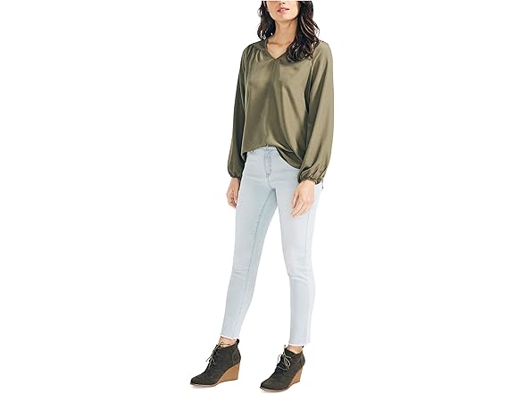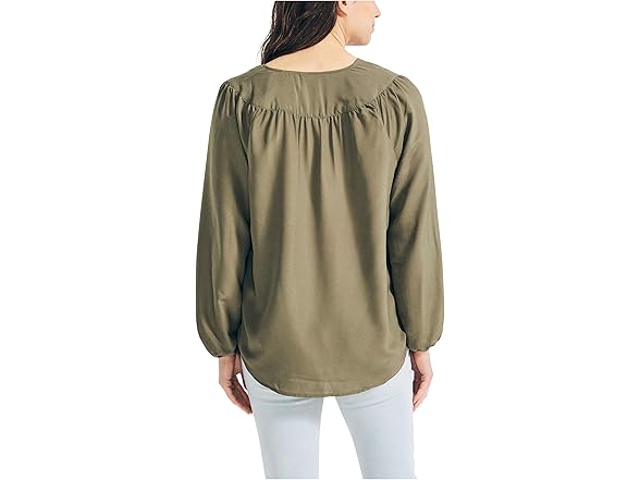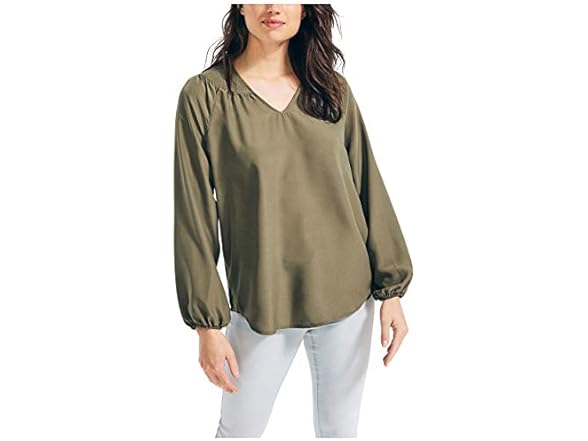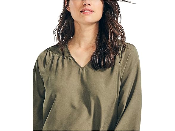 Nautica Womens Women's Long Sleeve V-Neck Woven Shirt Blouse, Urban Camo, Large US