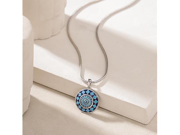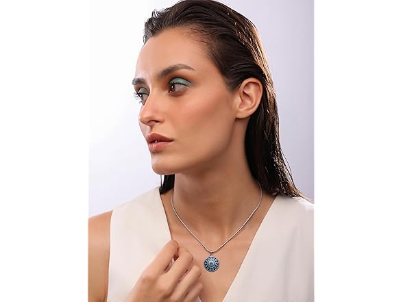Navicia Azure Fortress Filigree Pendant Necklace, Hypoallergenic Brass, 16+2.5"