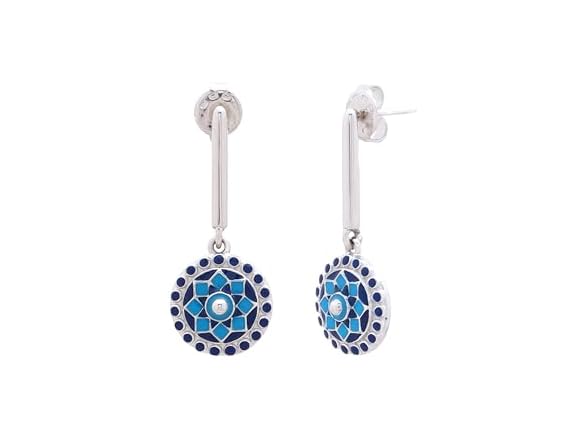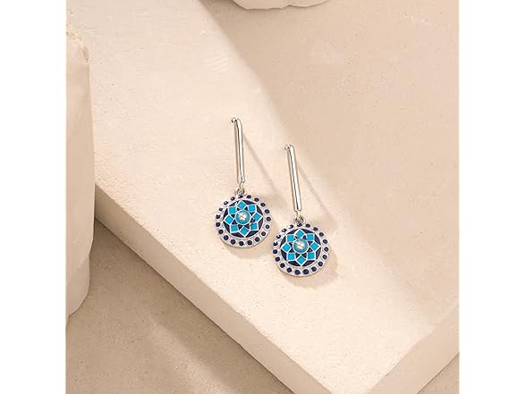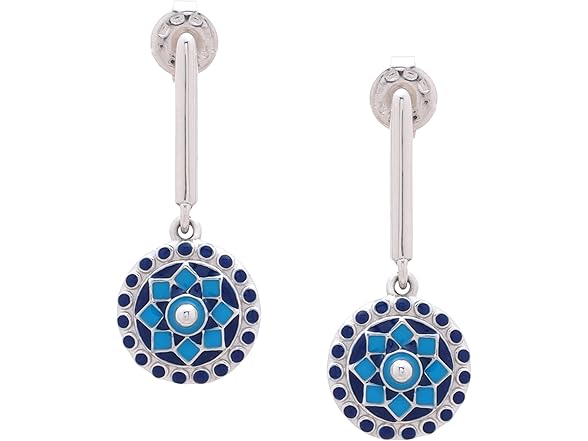 Navicia Azure Mughal Motif Hypoallergenic Brass Drop Earrings, Handcrafted, Blue Meenakari Jewelry