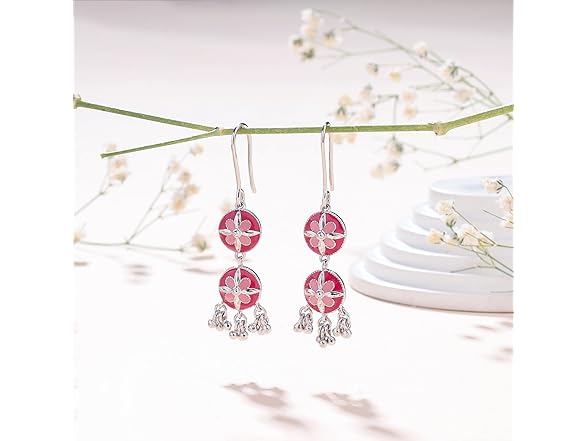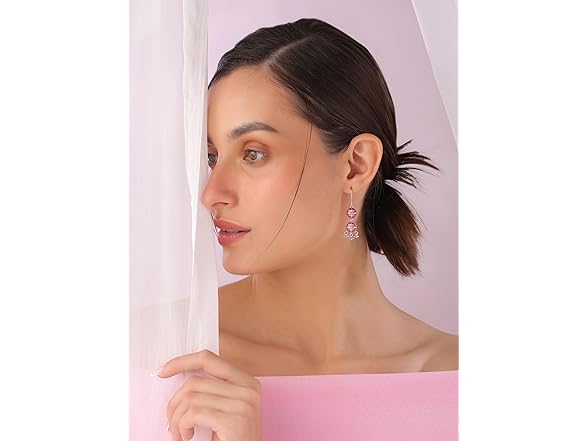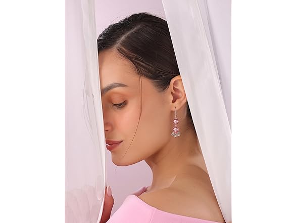 Navicia Rosa Blushing Blossom Brass Drop Earrings, Perfectly Pretty Gift Box Included, Art Inspired
