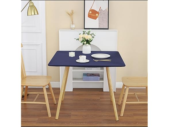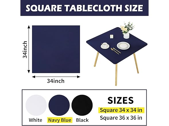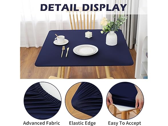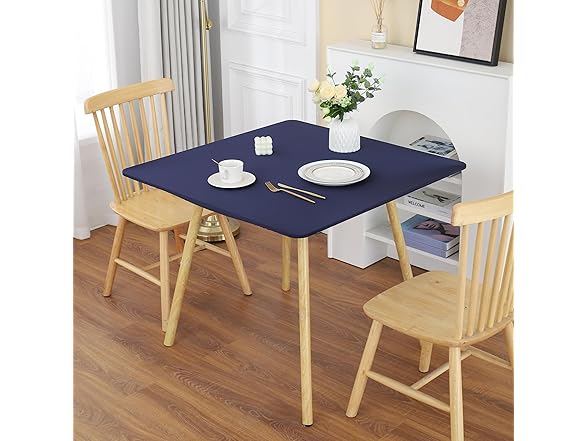 Navy Blue Fitted Square Tablecloth Elastic Table Cover Stretch Tabletop Cover Spandex Card Table Topper Cap for Party Dinning Kitchen 34 x 34 inch