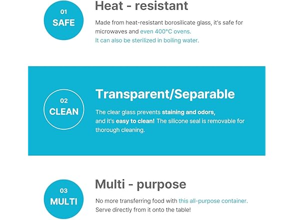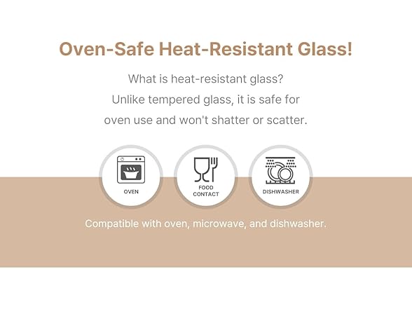 - Heat-resistant borosilicate glass for safety and environmental protection – BPA free and oven, microwave, air fryer, and freezer safe. Withstands temperatures up to 400 degrees Celsius, resistant to sudden temperature changes.