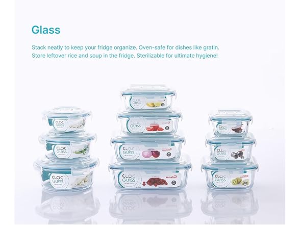 - Freshness anytime, anywhere – meet all your daily size needs with Cloc Glass. From perfect sizes for frozen foods or quick bites to large capacities for fruits, pick your ideal size with Cloc Glass.