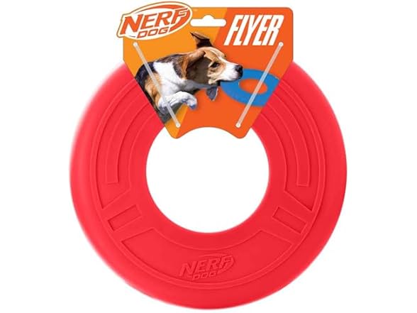 Nerf Dog Atomic Flyer Outdoor Dog Toy, 10 Inch Flying Disc Dog Fetch Toy, Rubber Dog Toy for Medium Dogs and Large Dogs, Red