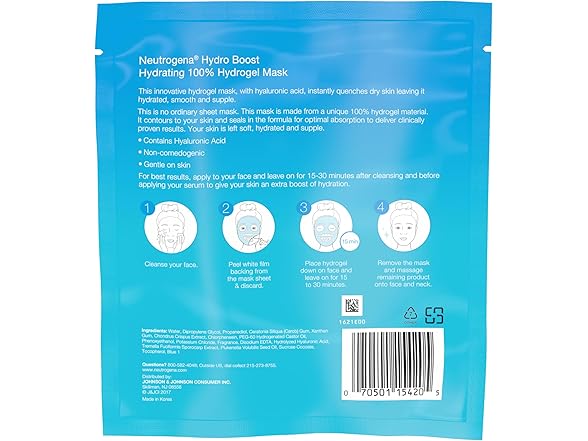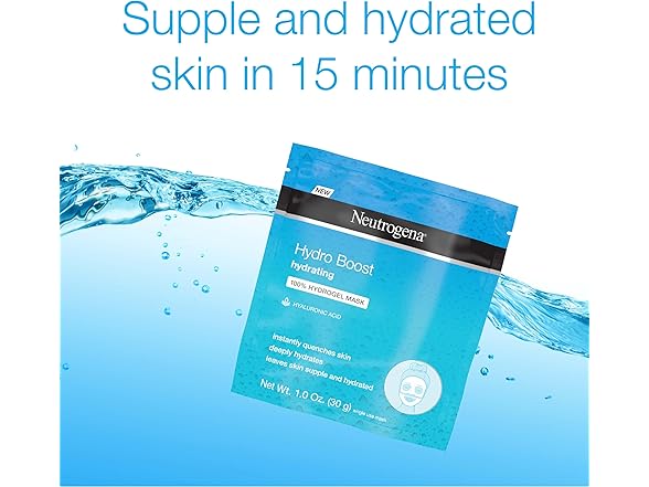 - HYDRATING FACE MASK: 1-count Neutrogena Hydro Boost Hydrating 100% Hydrogel Face Mask with purified hyaluronic acid and moisturizing serum, quenching skin and helping maintain soft, smooth, supple skin.