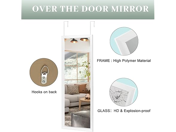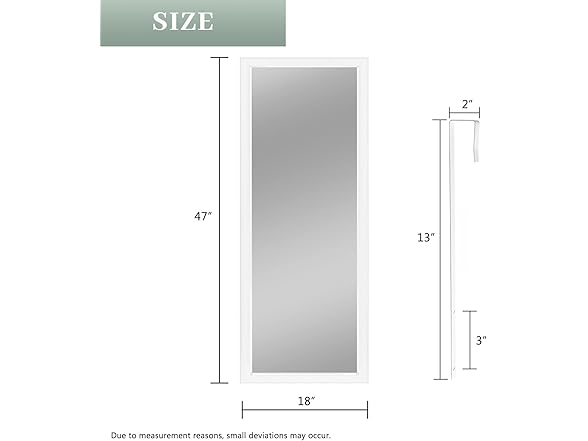 NeuType 47''x18'' Door Mirror Full Length Over The Wall Mount Hanging with 2 Metal Hangers for Bedroom Bathroom Living Room Decor White,(A-MR02003-NT-JP006)