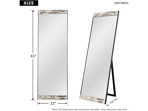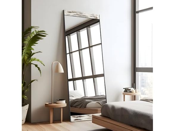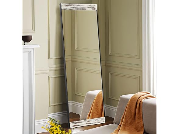 NeuType 65"x22" Full Length Mirror Standing Hanging or Leaning Against Wall, Large Rectangle Bedroom Mirror Floor Mirror Dressing Mirror, Wall-Mounted Mirror with Pine Wood Veneers, White