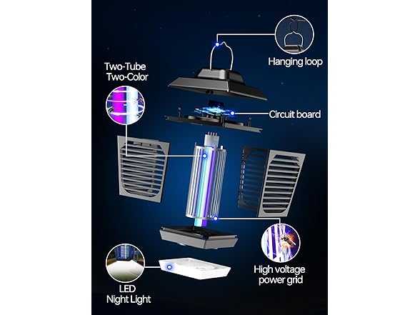 - High-Voltage Electric Grid – Instantly zaps mosquitoes upon contact with its powerful 360° electrified grid, ensuring quick and hygienic pest elimination without chemicals.